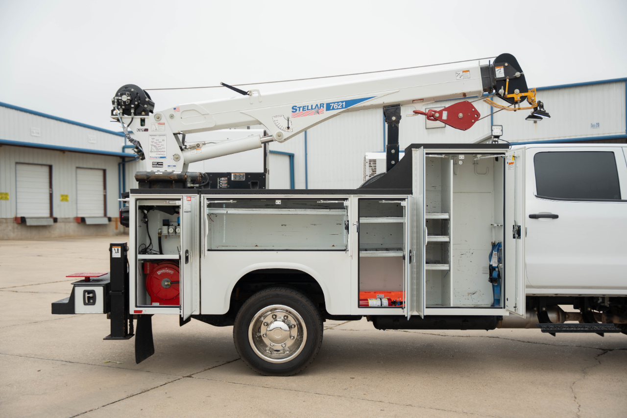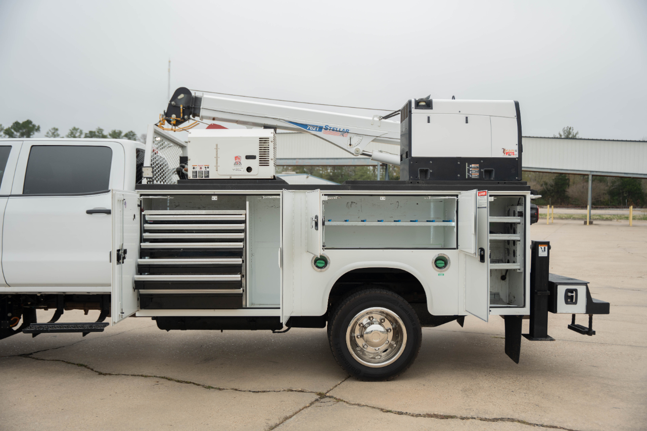 STELLAR 7621 CRANE, PTO COMPRESSOR, MILLER BOBCAT, DRAWER PACK, WORK LIGHTS, STROBES