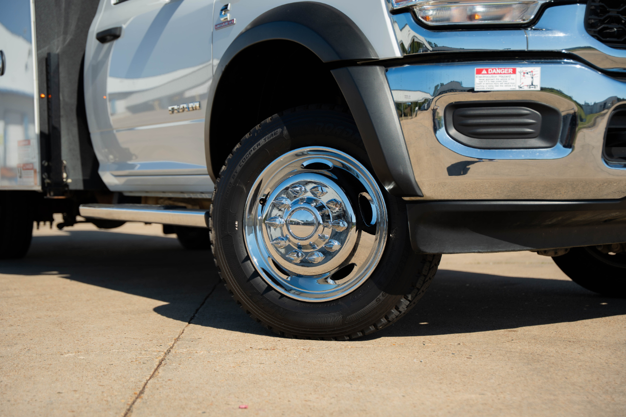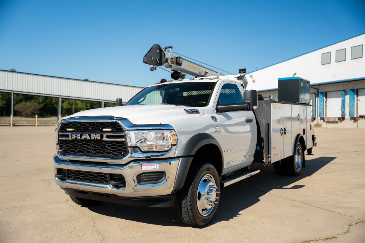 This professionally upfitted 2022 RAM 5500 Regular Cab 4WD DRW is the ultimate mobile workshop, ready to handle the most demanding jobs with exceptional power and capability. With just 44,712 miles on its 6.7L Cummins Turbo Diesel engine, this low-mileage work truck combines the legendary reliability of a RAM 5500 chassis with top-of-the-line equipment, including a powerful PSC 8029 crane, a Miller Airpak, and a corrosion-resistant Palfinger PAL Pro 43 service body. Its 4x4 capability ensures you can access even the most challenging job sites, no matter the terrain.