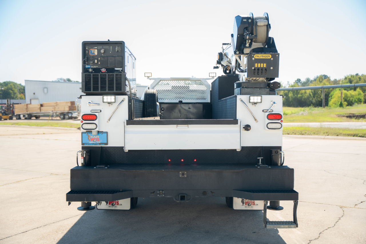 Exterior: The truck is finished in a bright white exterior color and includes multiple work lights to illuminate your work area, enhancing safety and visibility on the job site.