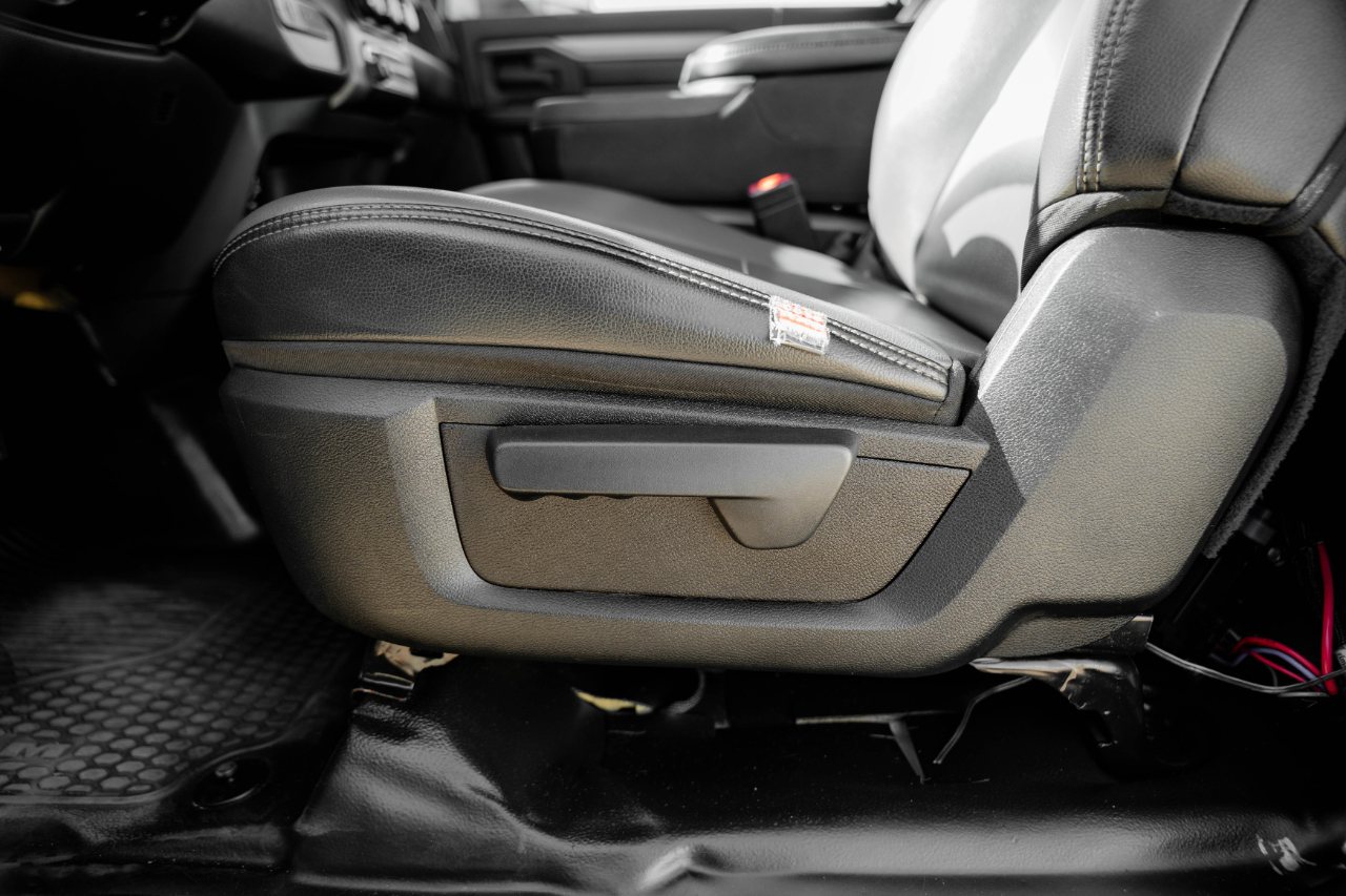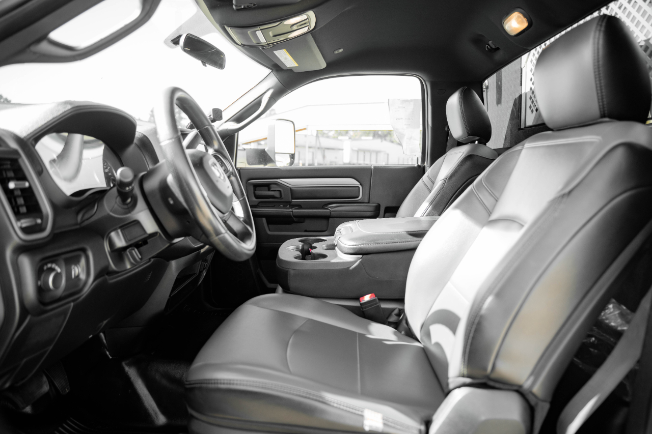 Interior: The cabin features a durable black vinyl interior, designed for easy cleaning and built to withstand the wear and tear of daily work.