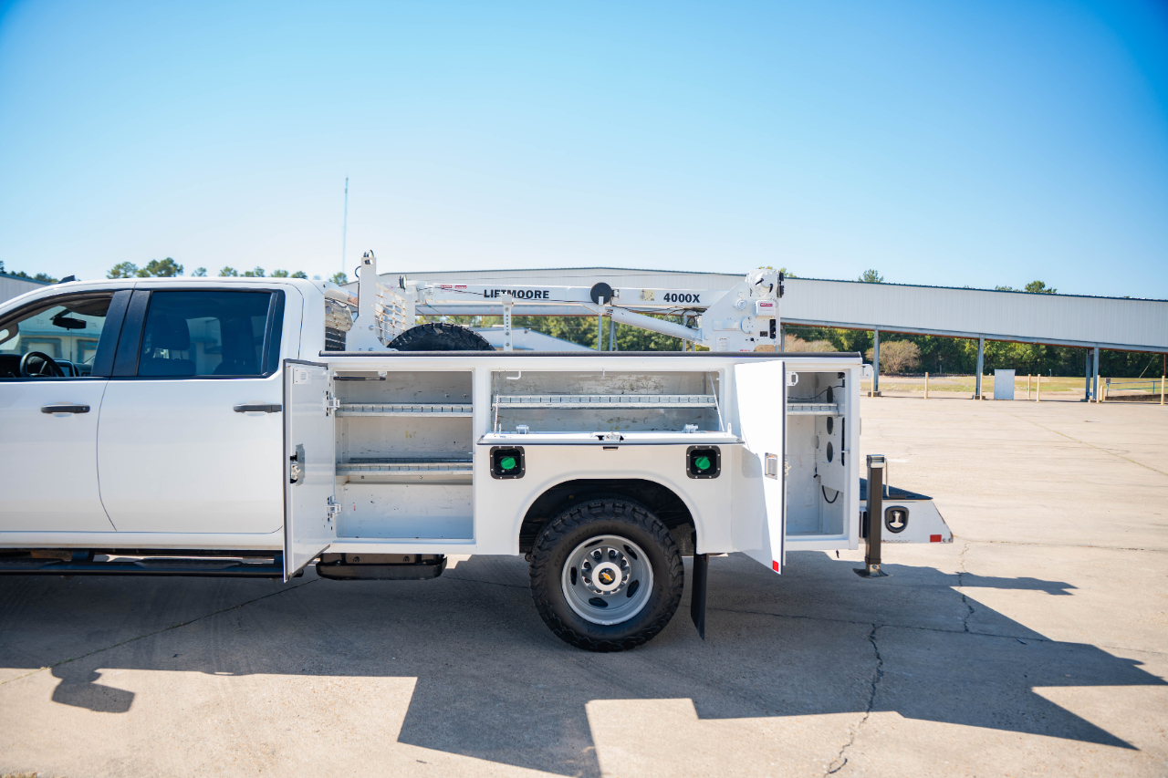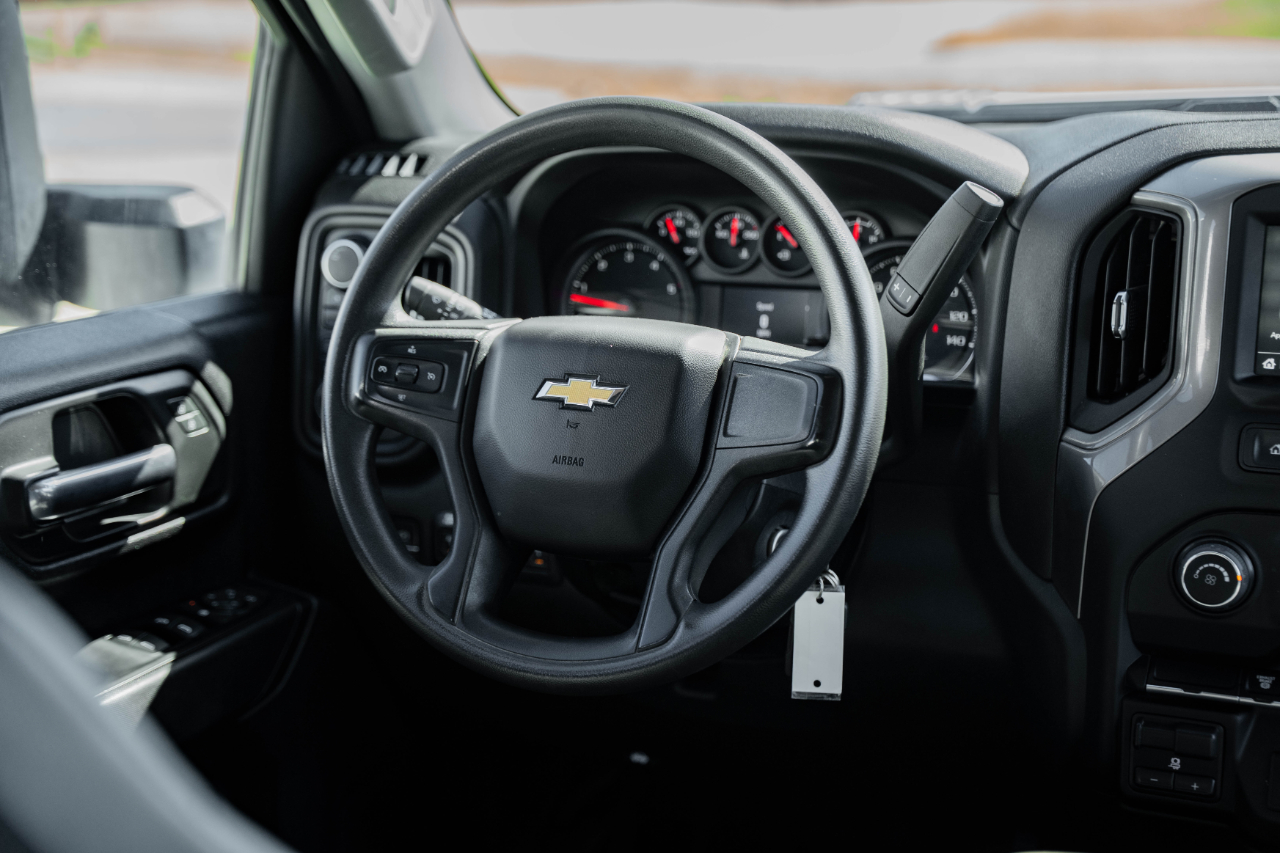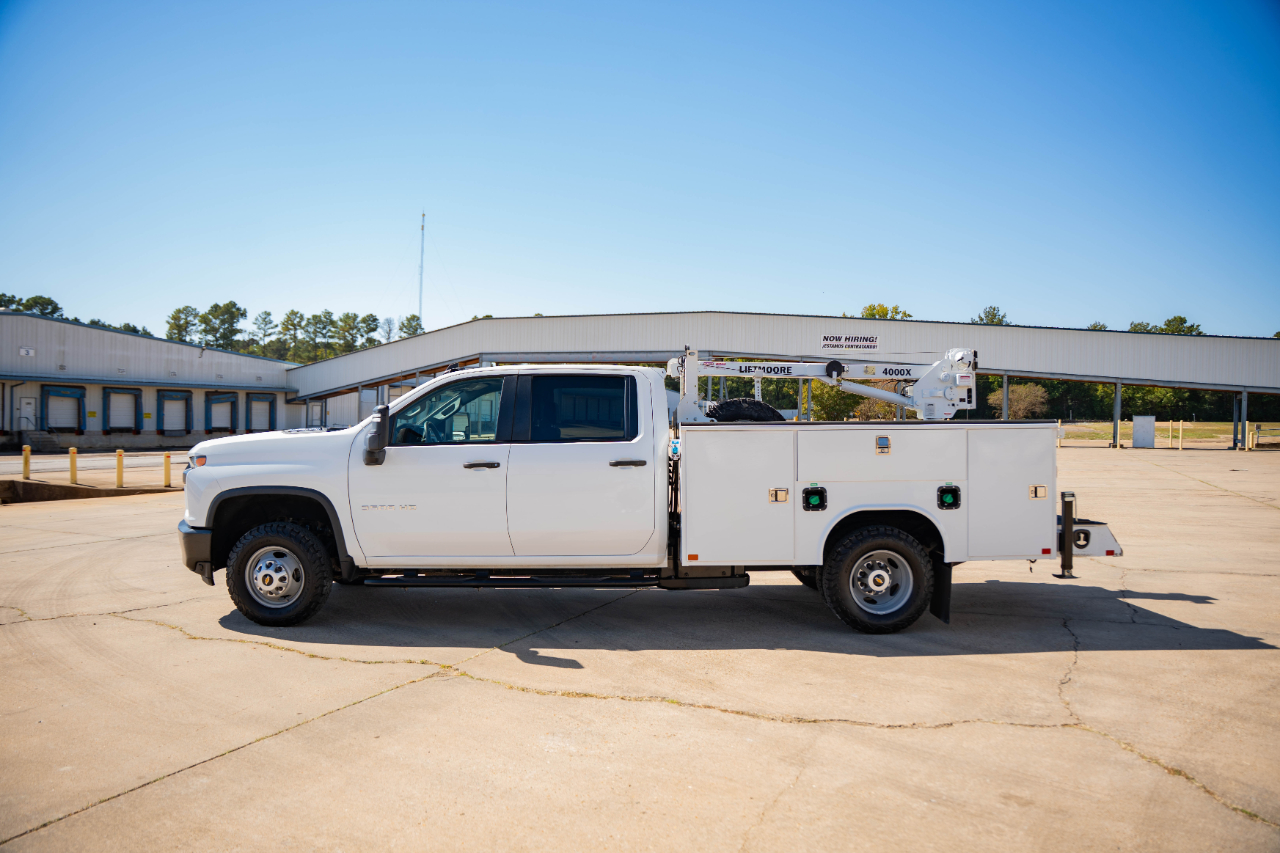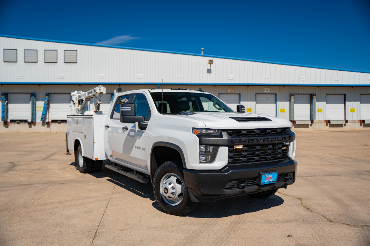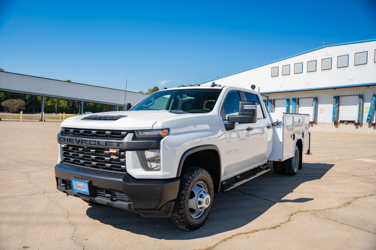 This 2023 Chevrolet Silverado 3500HD Work Truck Crew Cab 4WD is a low-mileage, heavy-duty service vehicle built for performance and durability. Featuring a powerful 6.6L V8 Turbo Diesel engine and 10-speed automatic transmission, this truck is configured for demanding job sites and rugged terrain.