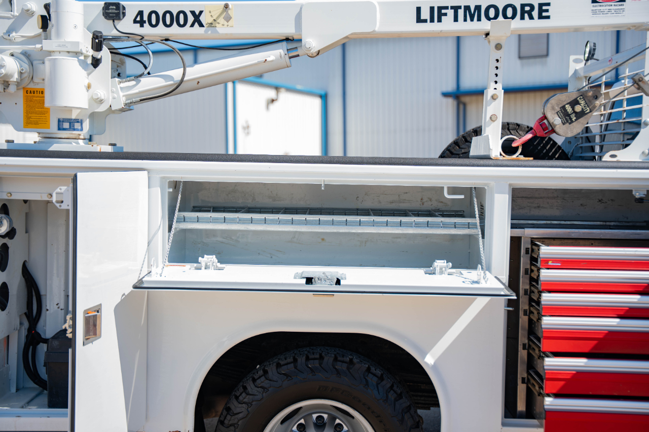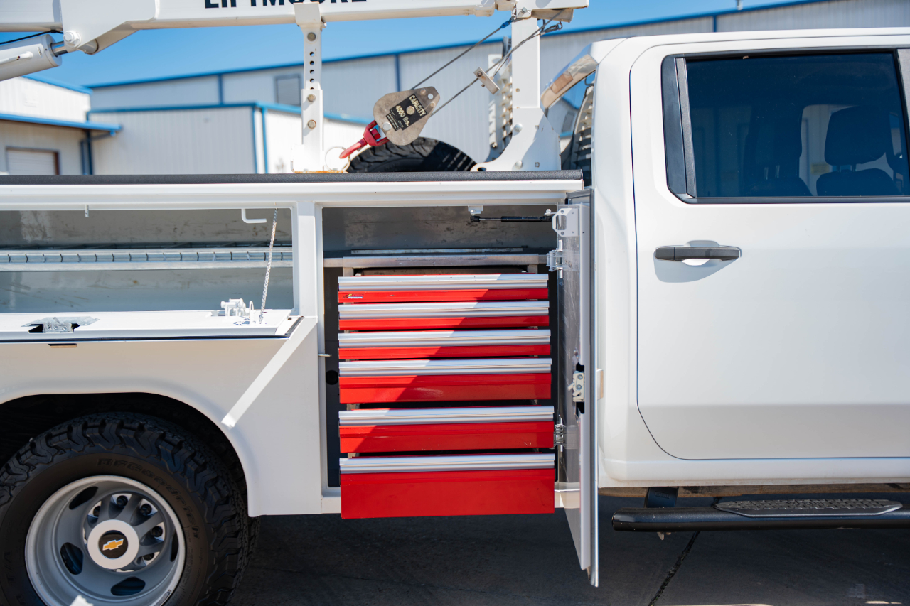 Reading Service Body: Features a durable Reading Service Body with a practical drawer pack system for secure and organized tool storage.